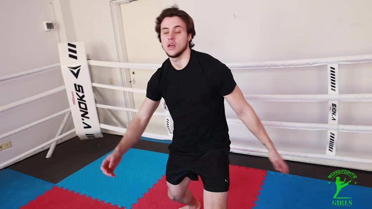 Hot Girl in blue workout gear owns man